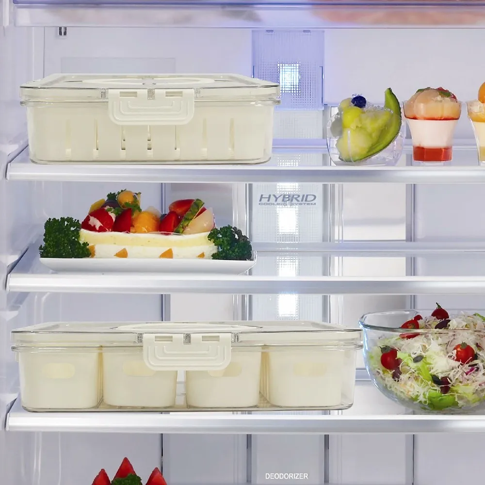 Esta é uma caixa de manutenção fresca particionada multifuncional que também pode ser usada como bandeja de frutas e lanches. Além de fornecer soluções de armazenamento de alimentos convenientes e higiênicas, também pode servir como bandeja de frutas, oferecendo vários lanches, como frutas e nozes, para seus convidados. É feito de material plástico de qualidade alimentar, garantindo durabilidade e confiabilidade.