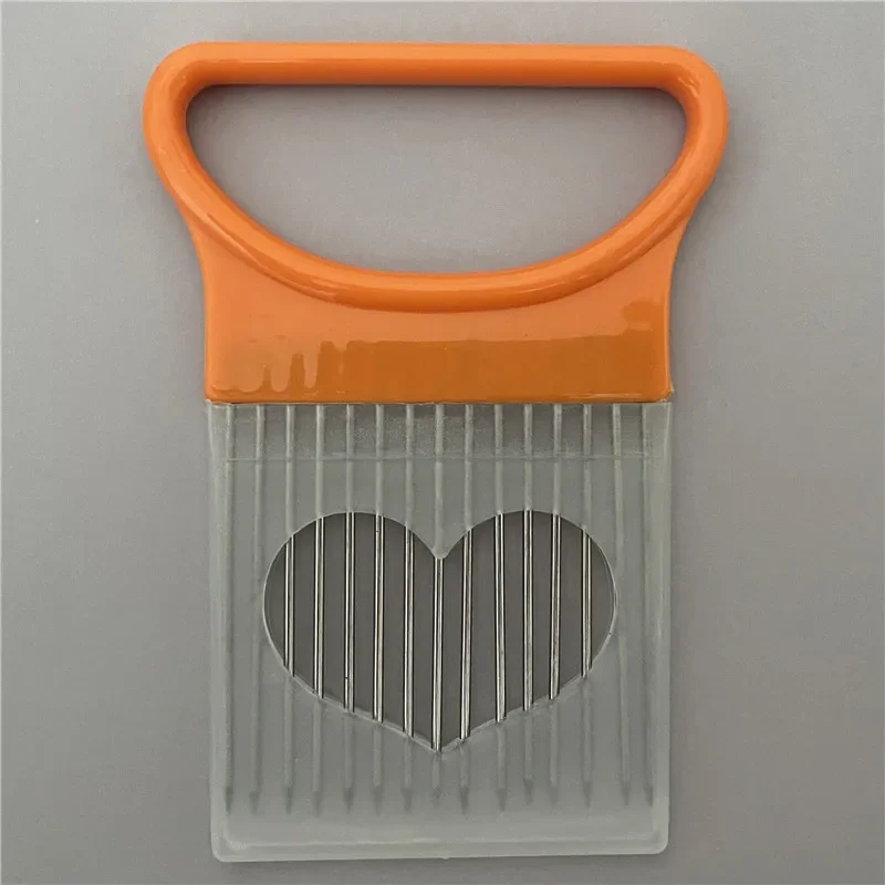 Corte cebolas sem esforço com este cortador de cebola colorido de aço inoxidável para cozinha, suporte de cebola para batata e batata para assistente de corte de 1 unidade